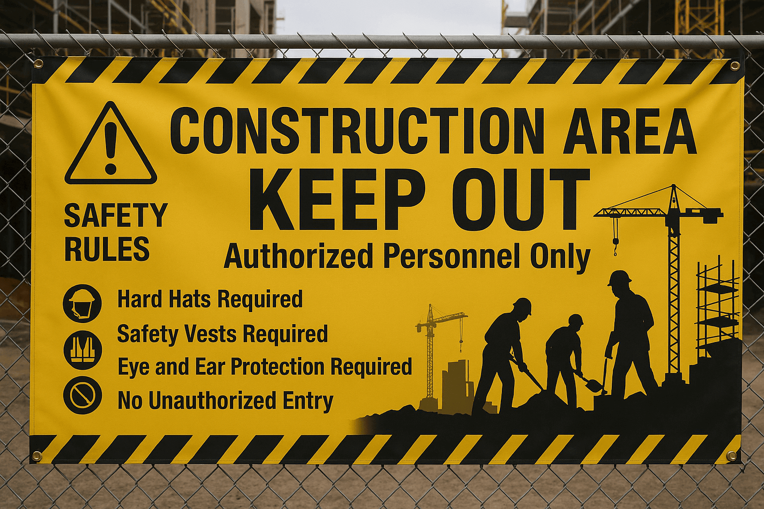 Construction sites can be difficult to navigate, especially for those unfamiliar with the layout. Large, easy-to-read banners help direct both pedestrian and vehicle traffic, reducing confusion and the risk of accidents. Messages about restricted areas, required safety gear, or emergency exits become more effective when clearly displayed near work zones.